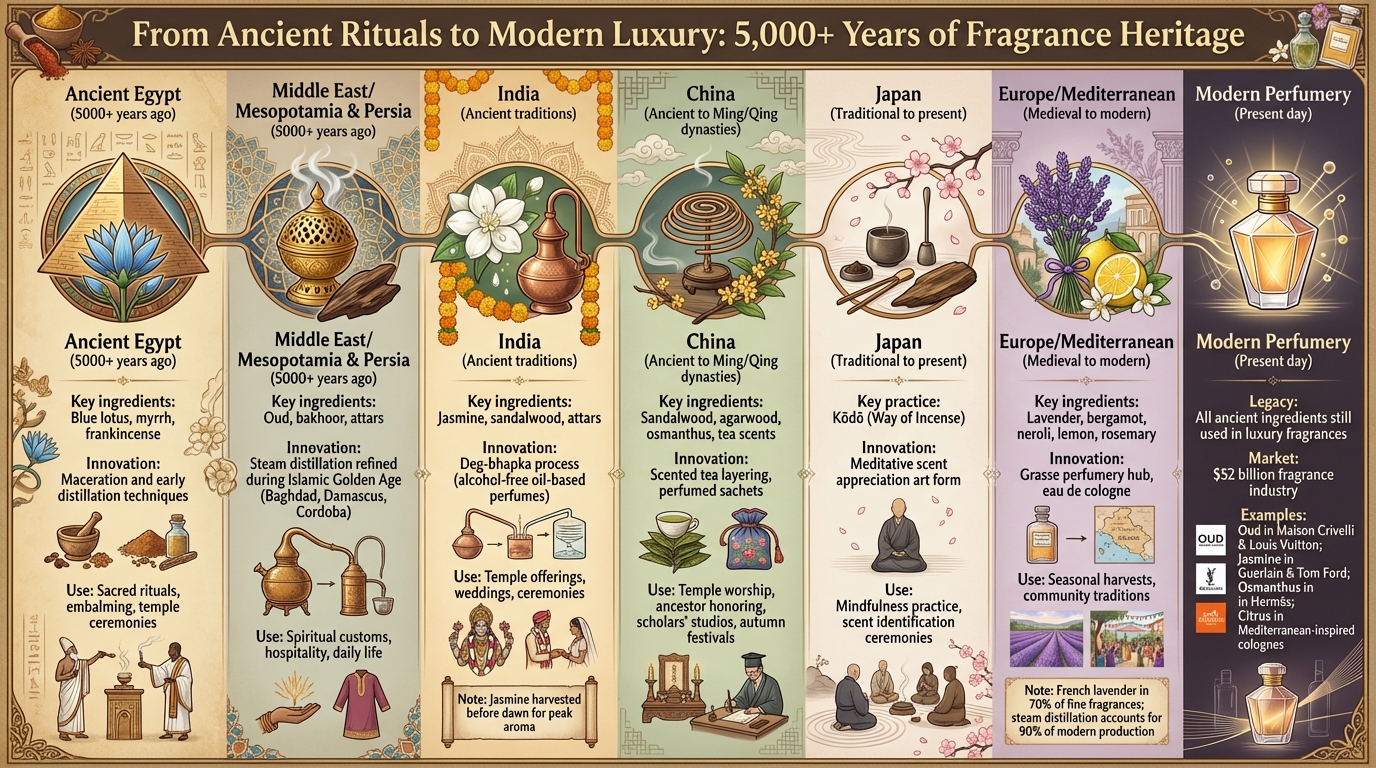 These examples illustrate how modern perfumery continues to draw inspiration from ancient traditions, blending historical practices with contemporary techniques.
