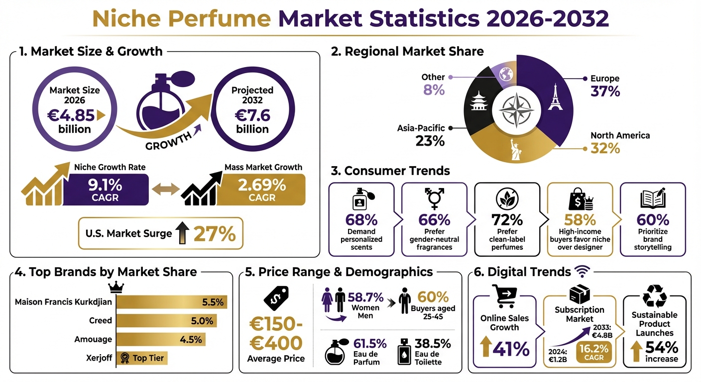The niche perfume market is expected to hit $4.85 billion by 2026, forming a notable share of the broader $56–57 billion luxury fragrance industry.