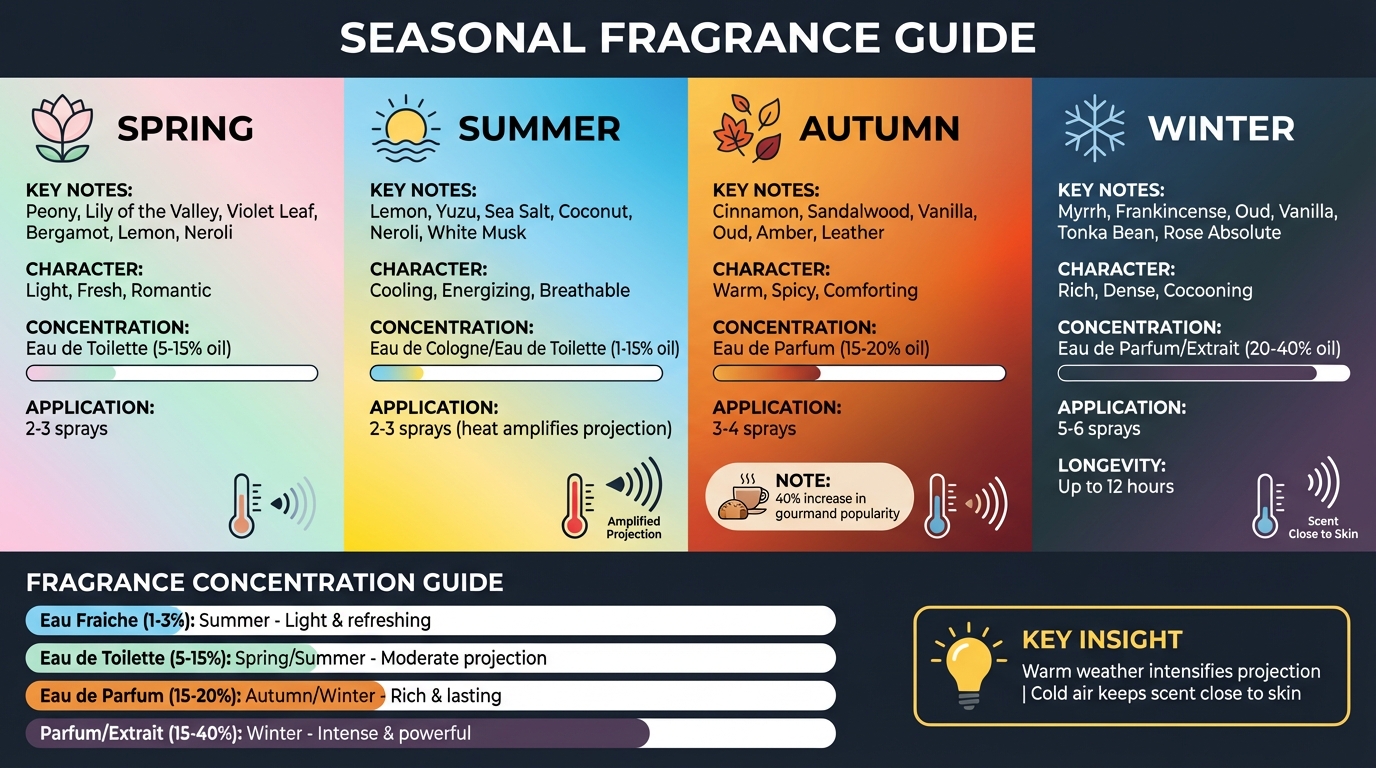 Seasonal Fragrance Notes Guide: Spring, Summer, Autumn, Winter Perfume Characteristics