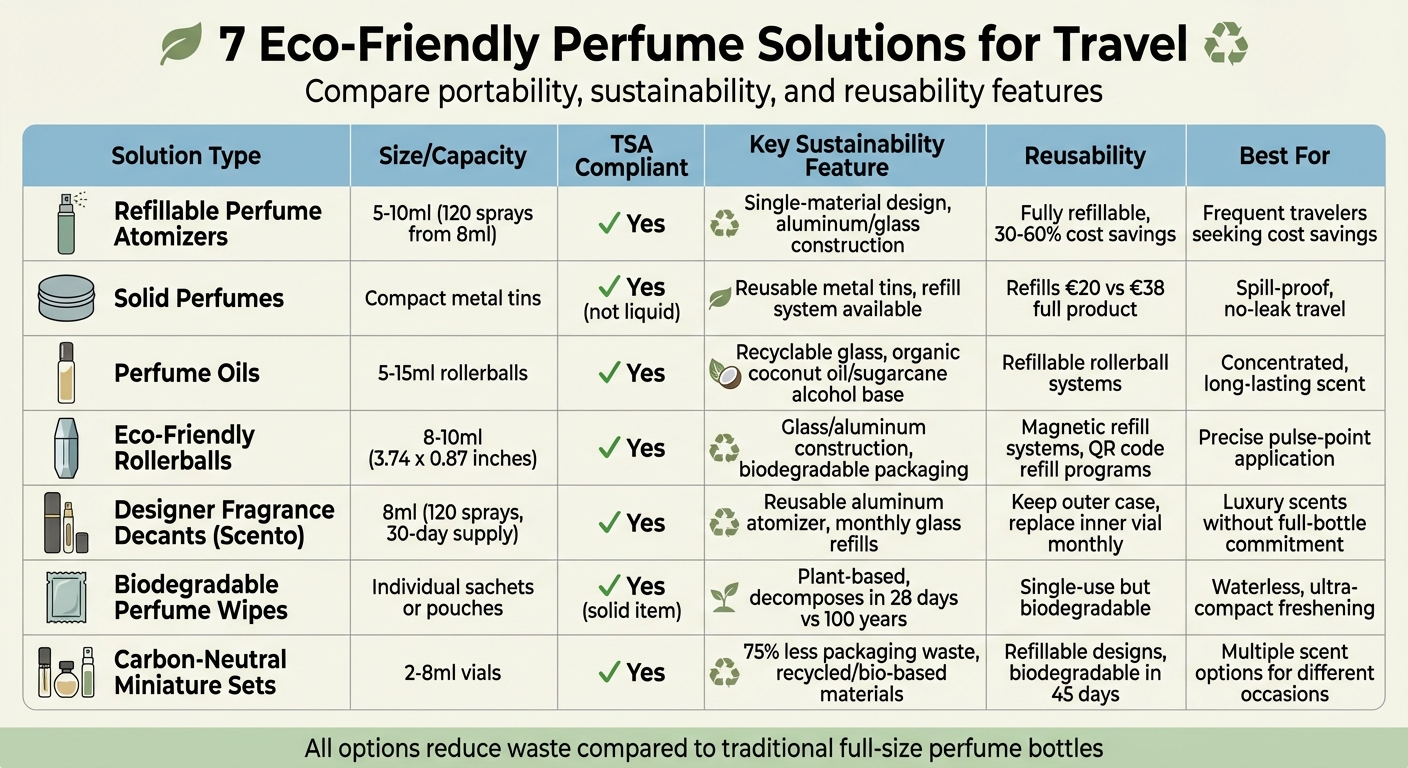 Při cestování nemusíte volit mezi lehkým balením a oblíbenou vůní. Plnohodnotné flakony parfémů jsou objemné, náchylné k rozbití a kvůli kombinovaným materiálům přispívají ke vzniku odpadu. Naštěstí existují chytřejší a ekologičtější alternativy. Od plnitelných atomizérů po biologicky rozložitelné ubrousky – tyto možnosti jsou kompaktní, nepropustné a splňují požadavky TSA. Využívají také recyklovatelné nebo znovupoužitelné materiály, čímž snižují odpad a zároveň zachovávají váš osobní styl.