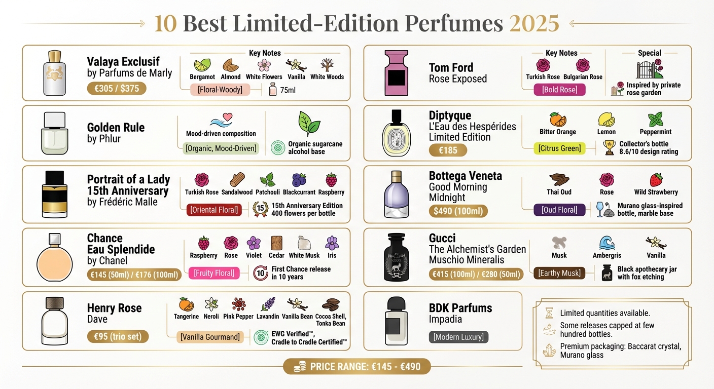 À la recherche de parfums rares et luxueux pour 2025 ? Cette sélection met en lumière dix fragrances en édition limitée alliant exclusivité, art et savoir-faire. Des senteurs unisexes aux flacons opulents, ces parfums sont conçus aussi bien pour les collectionneurs que pour les passionnés. Voici un aperçu :
