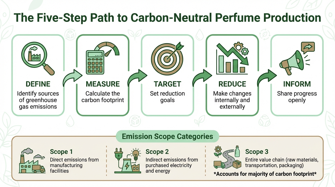 Processus en Cinq Étapes pour Atteindre la Neutralité Carbone dans la Production de Parfums
