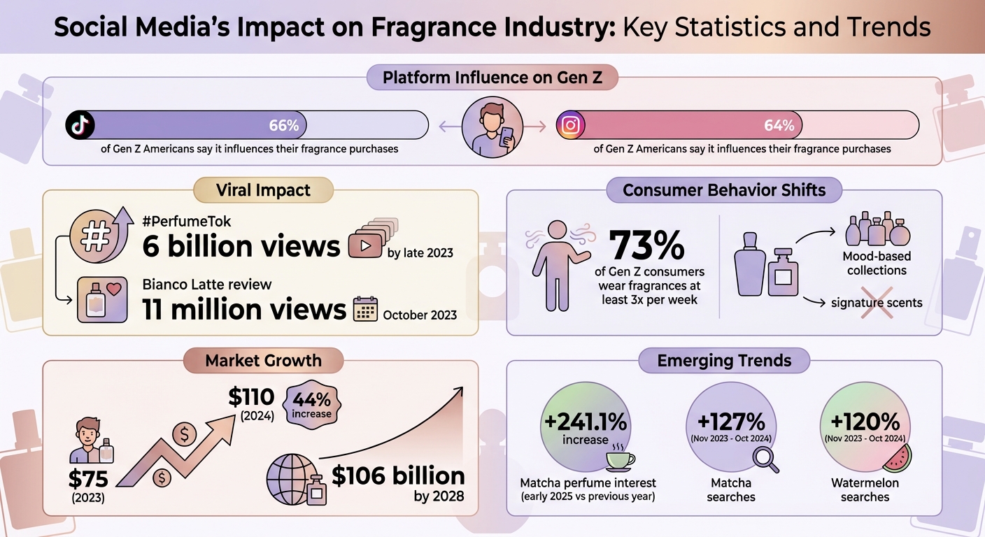 Cette approche fonctionne car les influenceurs sont perçus comme des voix de confiance plutôt que comme des publicitaires traditionnels. Par exemple, une revue TikTok de « Bianco Latte » par Giardini di Toscana, partagée par @perfumerism (Emma), est devenue virale avec plus de 11 millions de vues en octobre 2023. L’engouement a transformé ce parfum italien de niche en succès mondial, des détaillants comme Luckyscent peinant à suivre la demande jusqu’en 2024. À noter, 66 % des consommateurs de la Génération Z affirment que TikTok influence leurs achats de parfum, Instagram arrivant juste derrière avec 64 %.