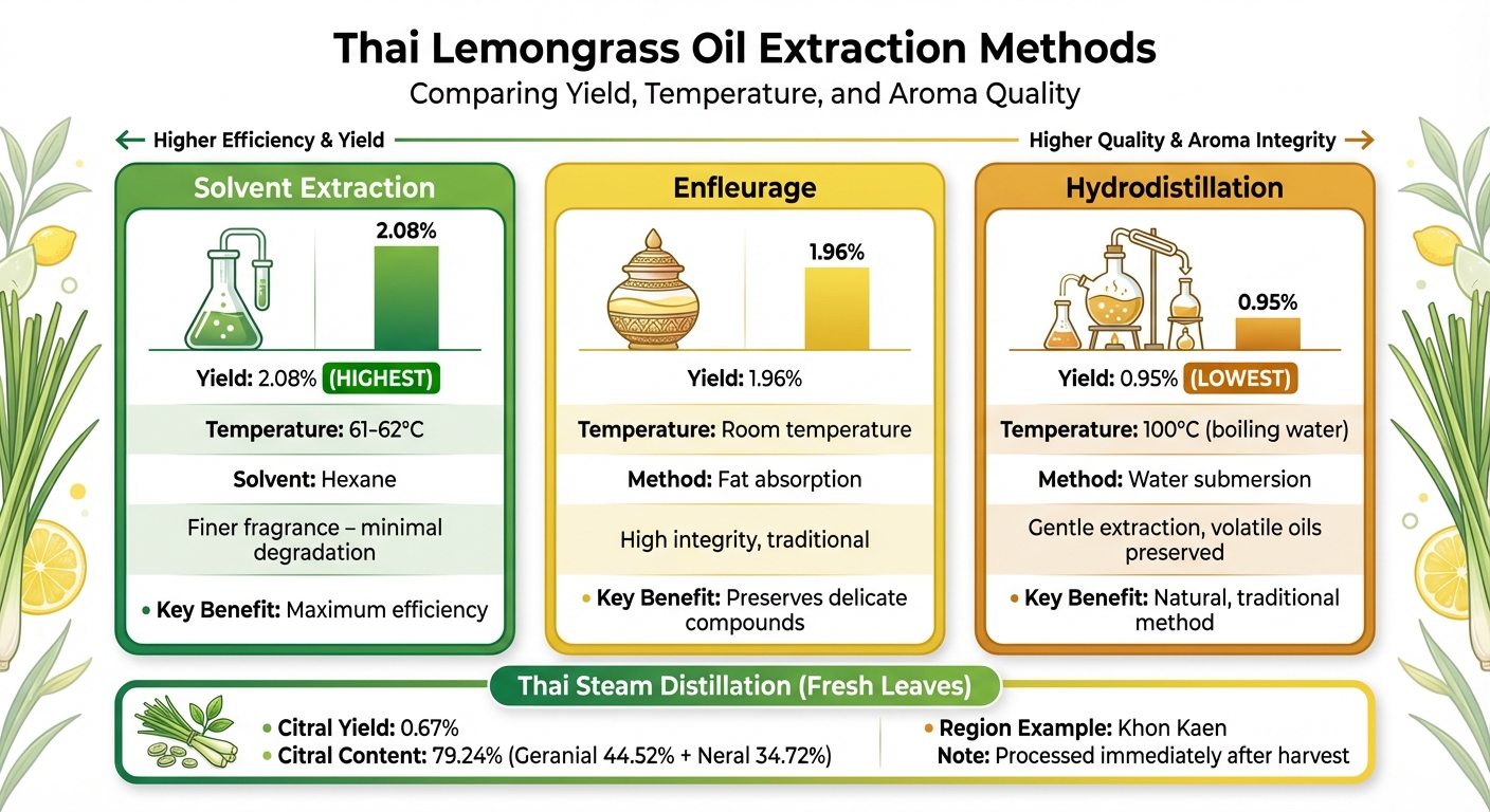 Thai Lemongrass Oil Extraction Methods: Yield and Quality Comparison