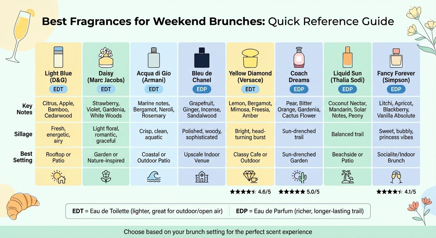 Comparație între cele mai bune parfumuri pentru brunch: note, siaj și decoruri ideale