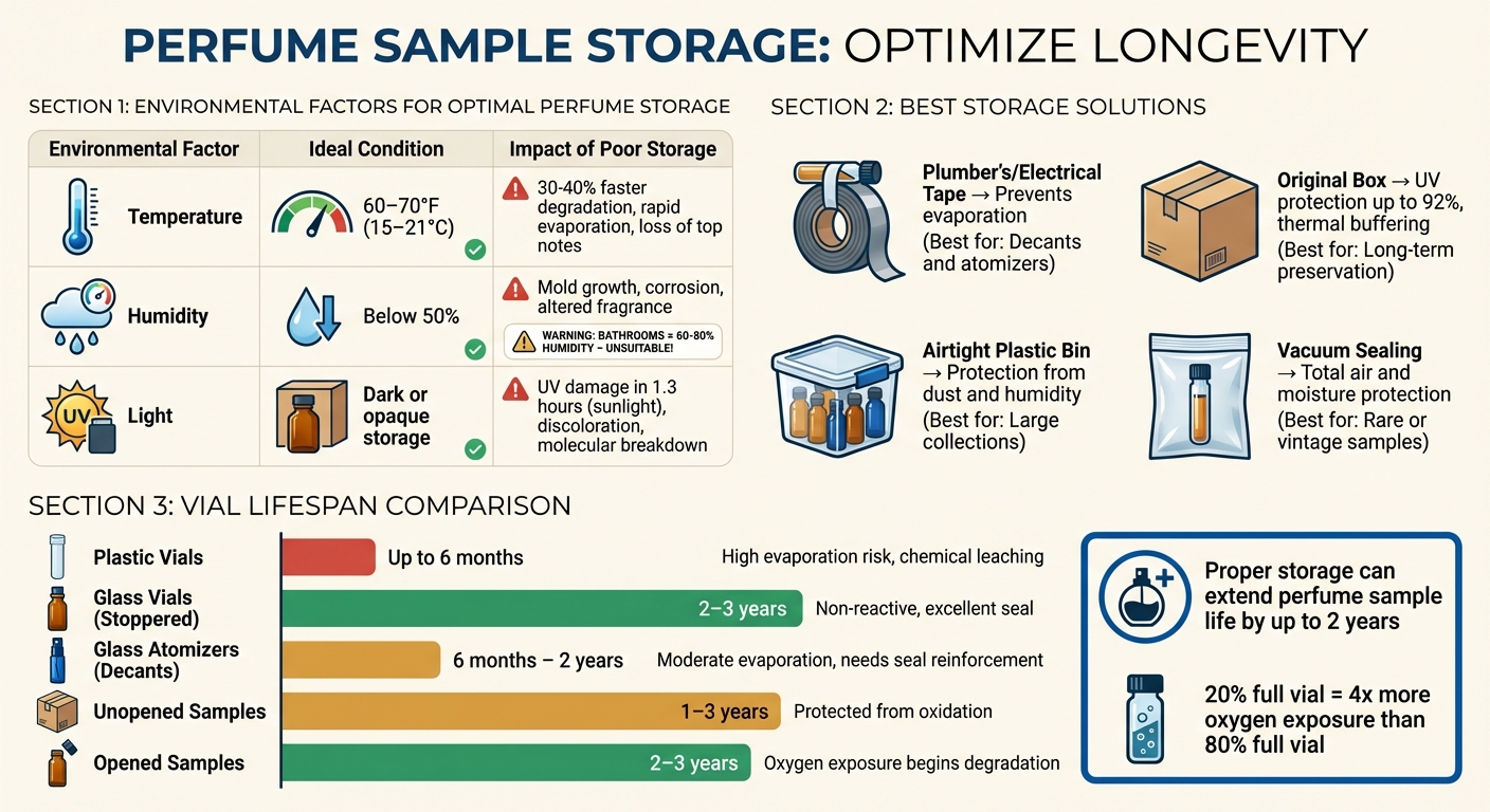 Ghid de depozitare a mostrelor de parfum: condiții ideale și durată de viață în funcție de tipul fiolei